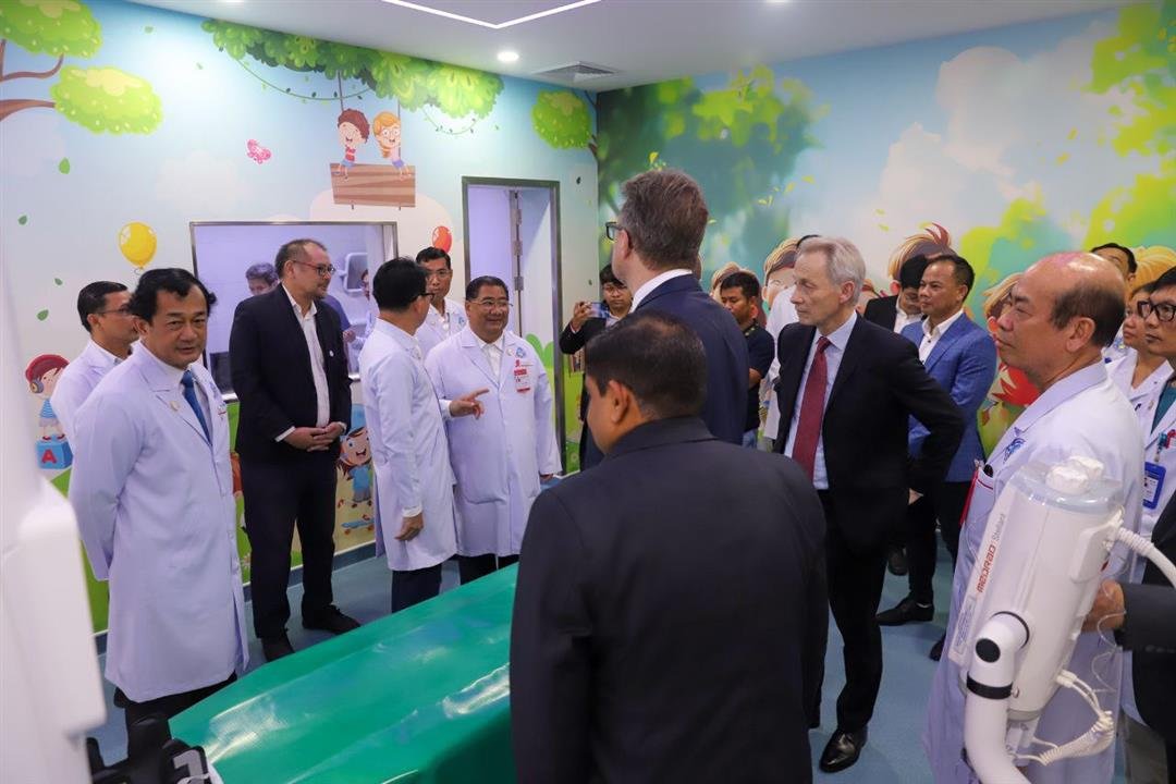 ក្រោមអធិបតីភាពរបស់ លោកបណ្ឌិត PHILIP Robinson ប្រធានមូលនិធិគន្ធបុប្ផាស្វីស និងលោកសាស្ត្រាចារ្យ MICHAEL Grotzer អនុប្រធានមូលនិធិស្វីស និងជានាយកមន្ទីរពេទ្យកុមារ Zurich អមដំណើដោយលោកសាស្ត្រាចារ្យ យ៉ៃ ចន្ទនា ប្រធានមន្ទីរពេទ្យជ័យវរ្ម័នទី៧ ព្រមទាំងលោកសាស្ត្រាចារ្យ អនុប្រធានមន្ទីរពេទ្យ និងមន្ត្រីរាជការ-បុគ្គលិក និងសម្របសម្រួលដោយថ្នាក់ដឹកនាំក្រុមហ៊ុន ITS។
