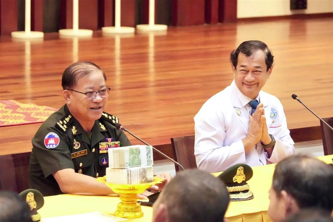 សៀមរាប៖ នៅព្រឹកថ្ងៃទី០១ ខែធ្នូ ឆ្នាំ២០២៥ ប្រតិភូយោធភូមិភាគទី៤ ដឹកនាំដោយឯកឧត្តម ឧត្តមសេនីយ៍ឯក ពៅ ហេង មេបញ្ជាការរងកងទ័ពជើងគោក មេបញ្ជាការយោធភូមិភាគទី៤ បាននាំយកថវិកាចំនួន ១០០,០០០,០០០រៀល (មួយរយលានរៀល) ប្រគល់ជូនដល់មន្ទីរពេទ្យជ័យវរ័្មនទី៧ (គន្ធបុប្ផាទី៣) ខេត្តសៀមរាប។