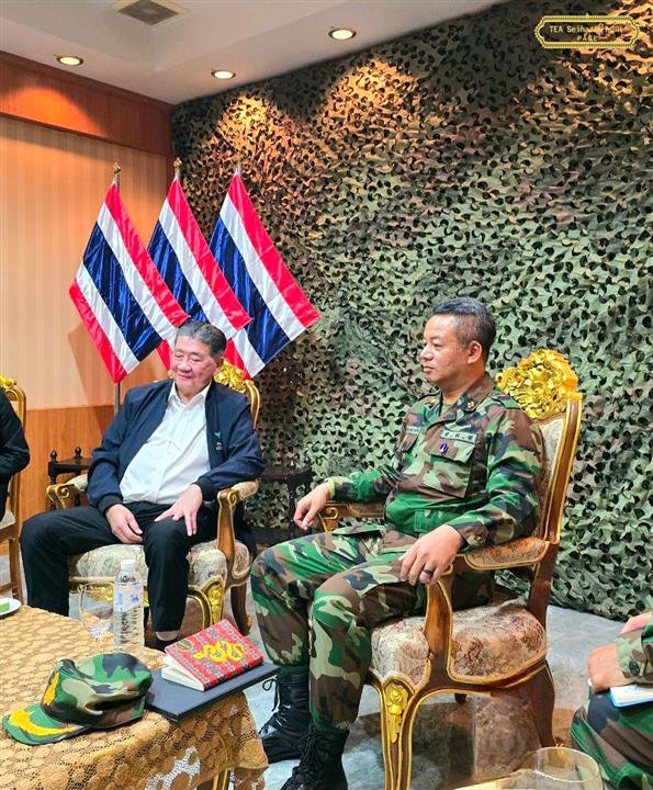 នៅរសៀលថ្ងៃទី៥ ខែមិថុនា ឆ្នាំ២០២៥ ឯកឧត្តម នាយឧត្តមសេនីយ៍ ទៀ សីហា ឧបនាយករដ្ឋមន្ត្រី រដ្ឋមន្ត្រីក្រសួងការពារជាតិ បានជួបពិភាក្សាជាមួយឯកឧត្តម Phumtham Wechayachai ឧបនាយករដ្ឋមន្ត្រី រដ្ឋមន្ត្រីក្រសួងការពារជាតិថៃ អំពីភាពតានតឹងតាមព្រំដែន ដែលបានប្រព្រឹត្តទៅនៅស្រុកអារញ្ញប្រថេត ខេត្តស្រះកែវ ព្រះរាជាណាចក្រថៃ ជាលទ្ធផលនៃកិច្ចប្រជុំ យើងបាន៖