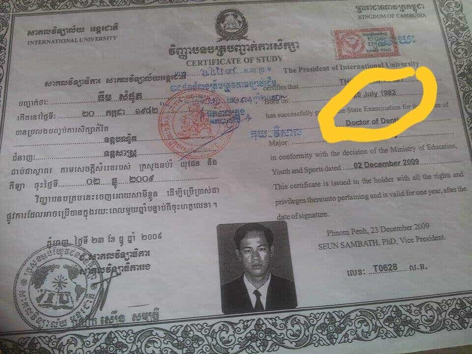 តើសញ្ញាបត្រនេះមានភាពមិនប្រក្រតី ឬយ៉ាងណា? គឺមានតែជំនាញពាក់ព័ន្ធ ក្នុងនោះមានក្រសួងសុខាភិបាល និងសាកលវិទ្យាល័យ អន្តរជាតិ ដែលអាចបញ្ជាក់កាន់តែច្បាស់។ ប៉ុន្តែទោះជាយ៉ាងណាក្តី មនុស្សម្នាក់កាលណារៀនចប់បរិញ្ញាបត្រមួយ គឺមិនអាចមានថ្ងៃខែឆ្នំាកំណើតខុសគ្នាបាននោះឡើយ។