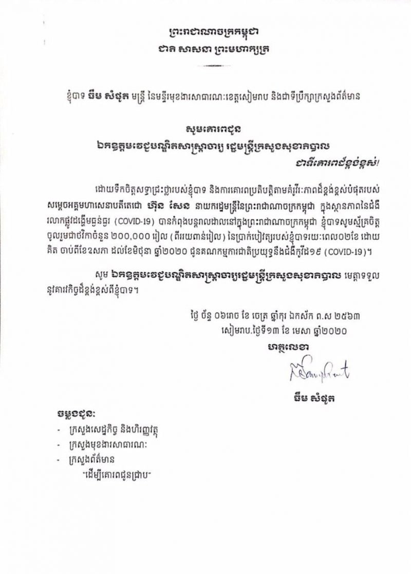 កាលពីលើកមុនមហាខ្មែរបានចុះផ្សាយអំពី ទីប្រឹក្សាក្រសួងព័ត៌មានម្នាក់ត្រូវបានព្រះរាជអាជ្ញានៃអយ្យការអមតុលាការខេត្តសៀមរាបសម្រេចឱ្យបើកការស៊ើបអង្កេតលើករណីឆបោក (សូមចុចអានអត្ថបទពេញ)។
